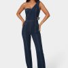 Sleek skinny leg jumpsuit with a front metal zipper and self-belt. Perfect for an edgy day look or casual evenings out.