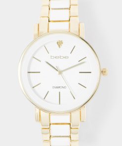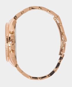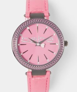 Bebe Women’s Baby Pink Strap And Rosegold Metal Chain Link Bracelet Watch | Baby Pink & Rosegold