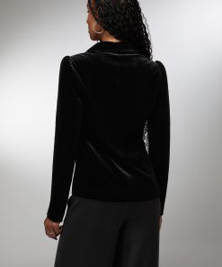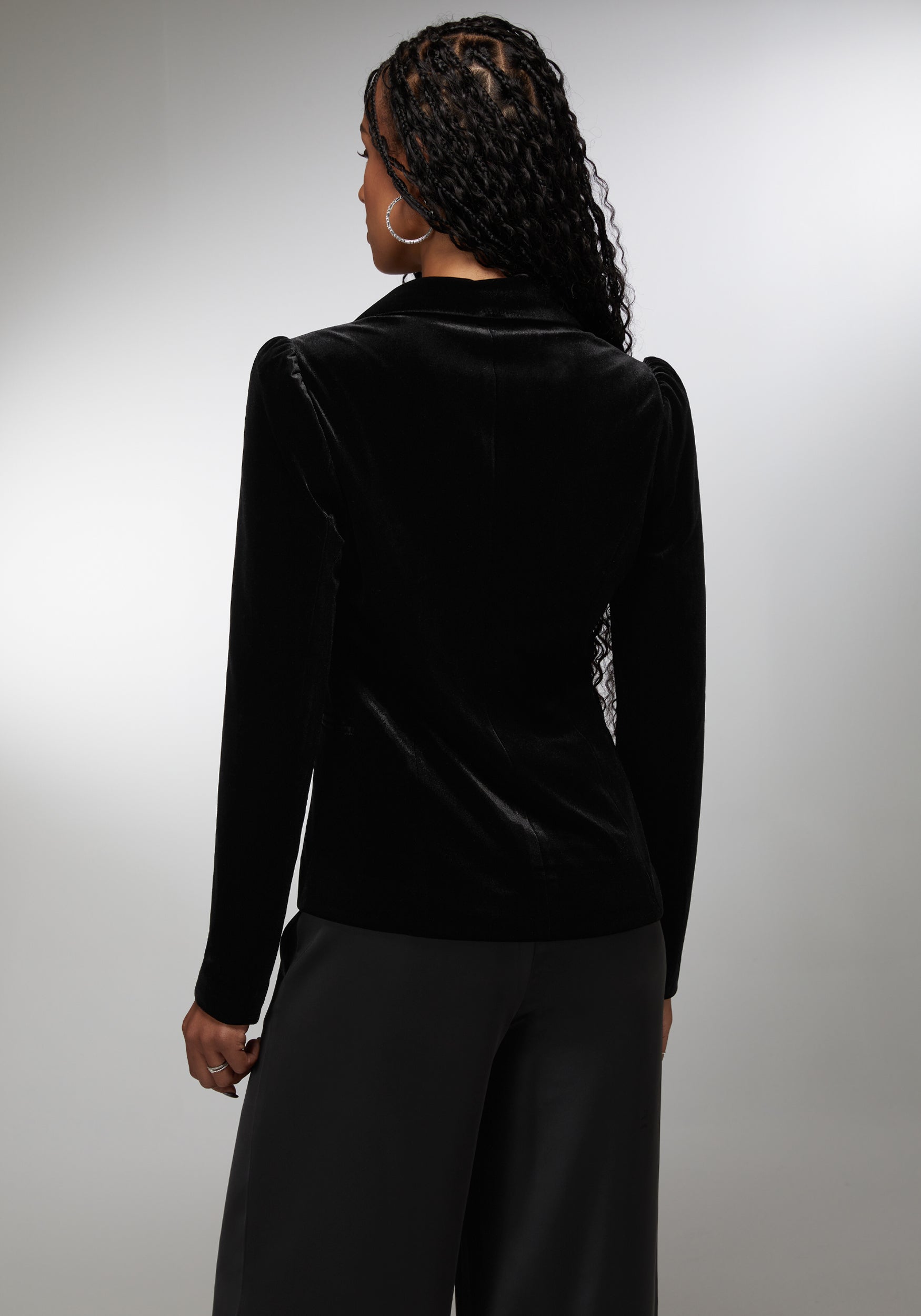 Bebe Women’s Corset Illusion Velour & Organza Tailored Blazer | Black