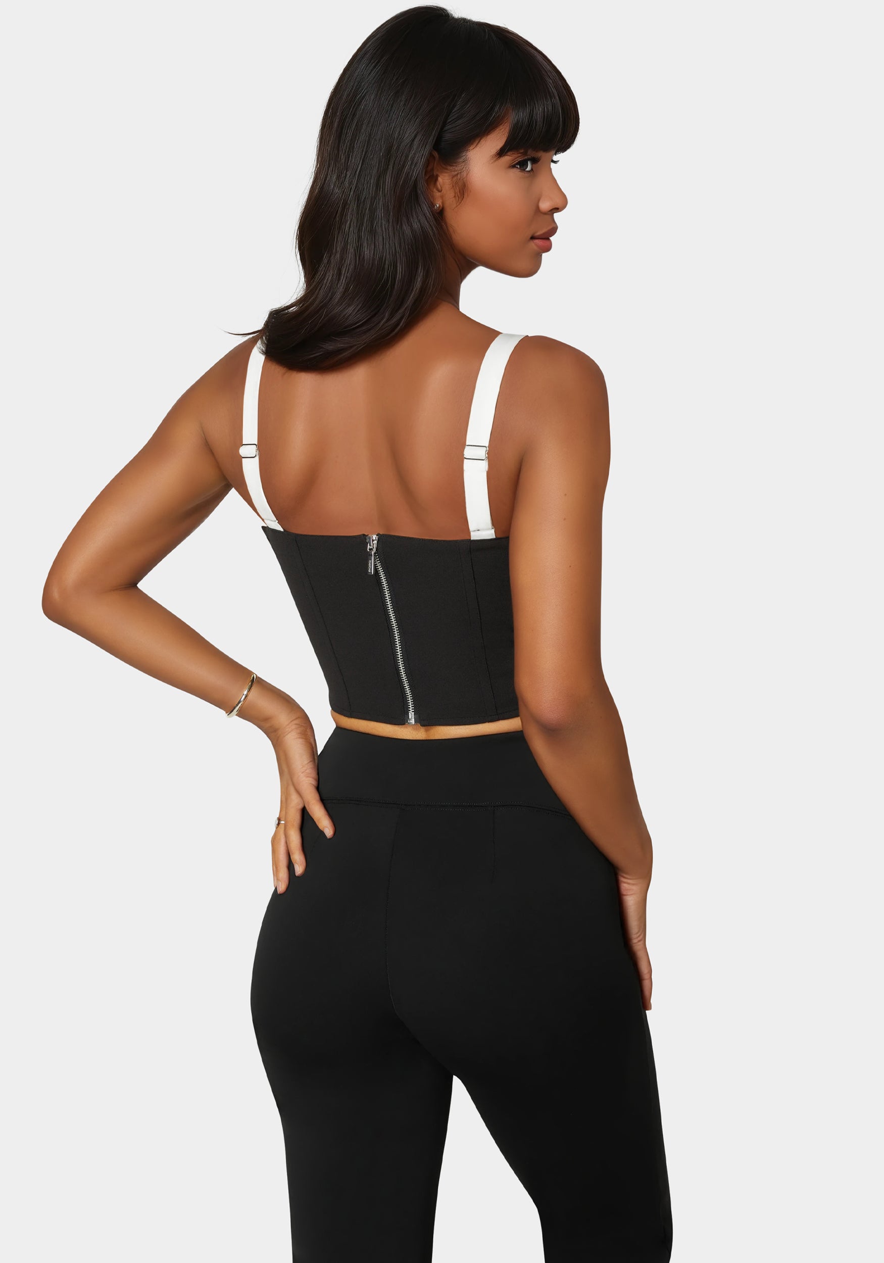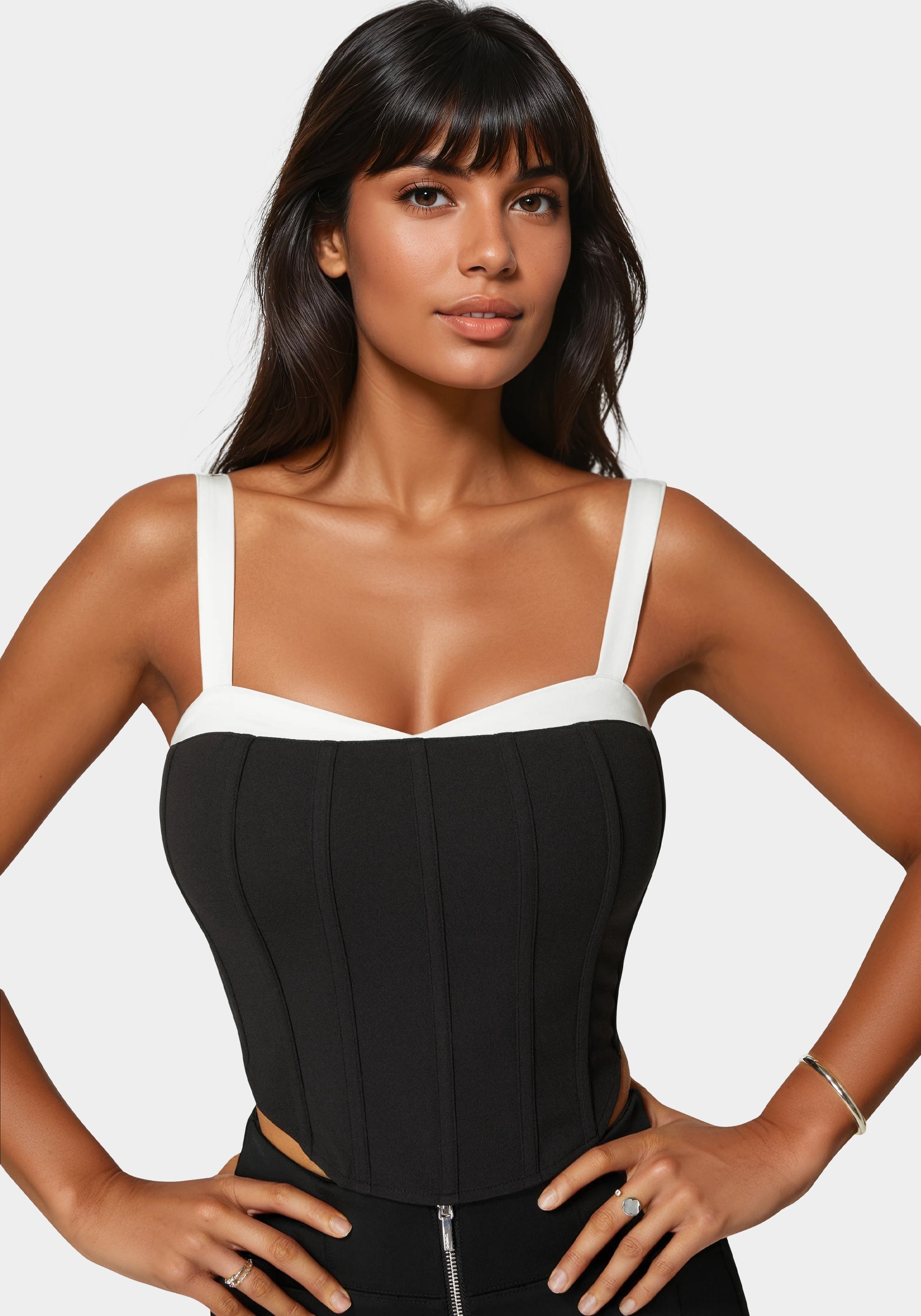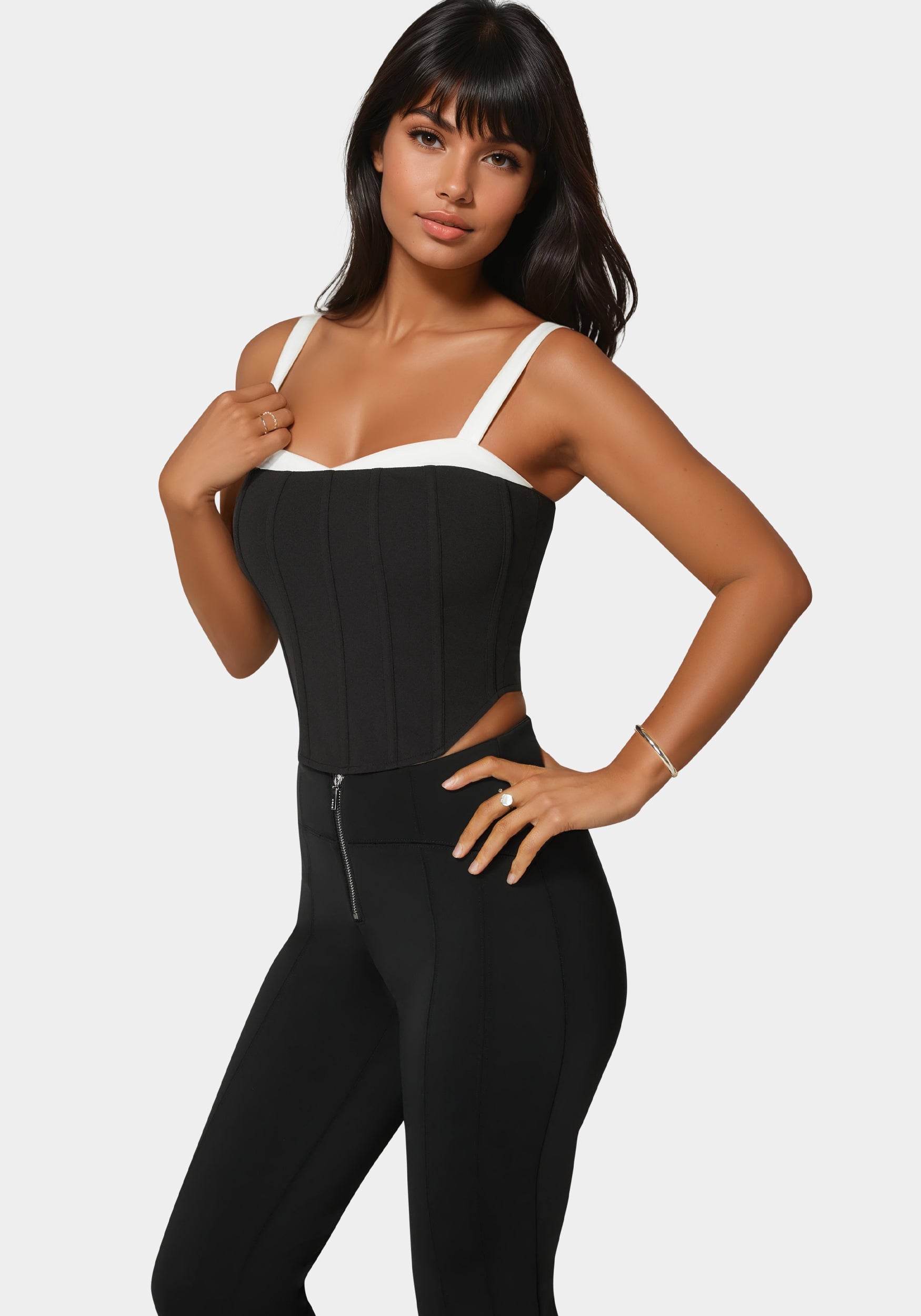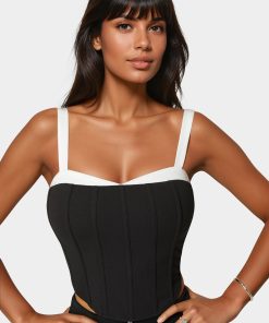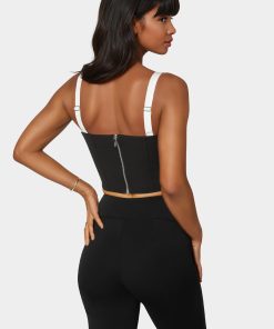 Bebe Women’s Corset Knit Top | Black & White Alyssum
