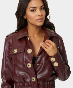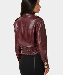 Stylish and edgy, this cropped vegan leather jacket is perfect for layering over casual or dressy outfits.