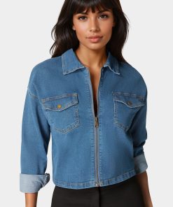 This full-zip denim jacket combines casual style with practicality. Perfect for adding a laid-back, versatile layer to any outfit.