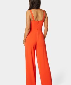 Elevate your evening wear with this fluid crepe palazzo leg jumpsuit. Great for elegant dinners or sophisticated events, its flowing legs and sleek bodice offer a stunning silhouette.