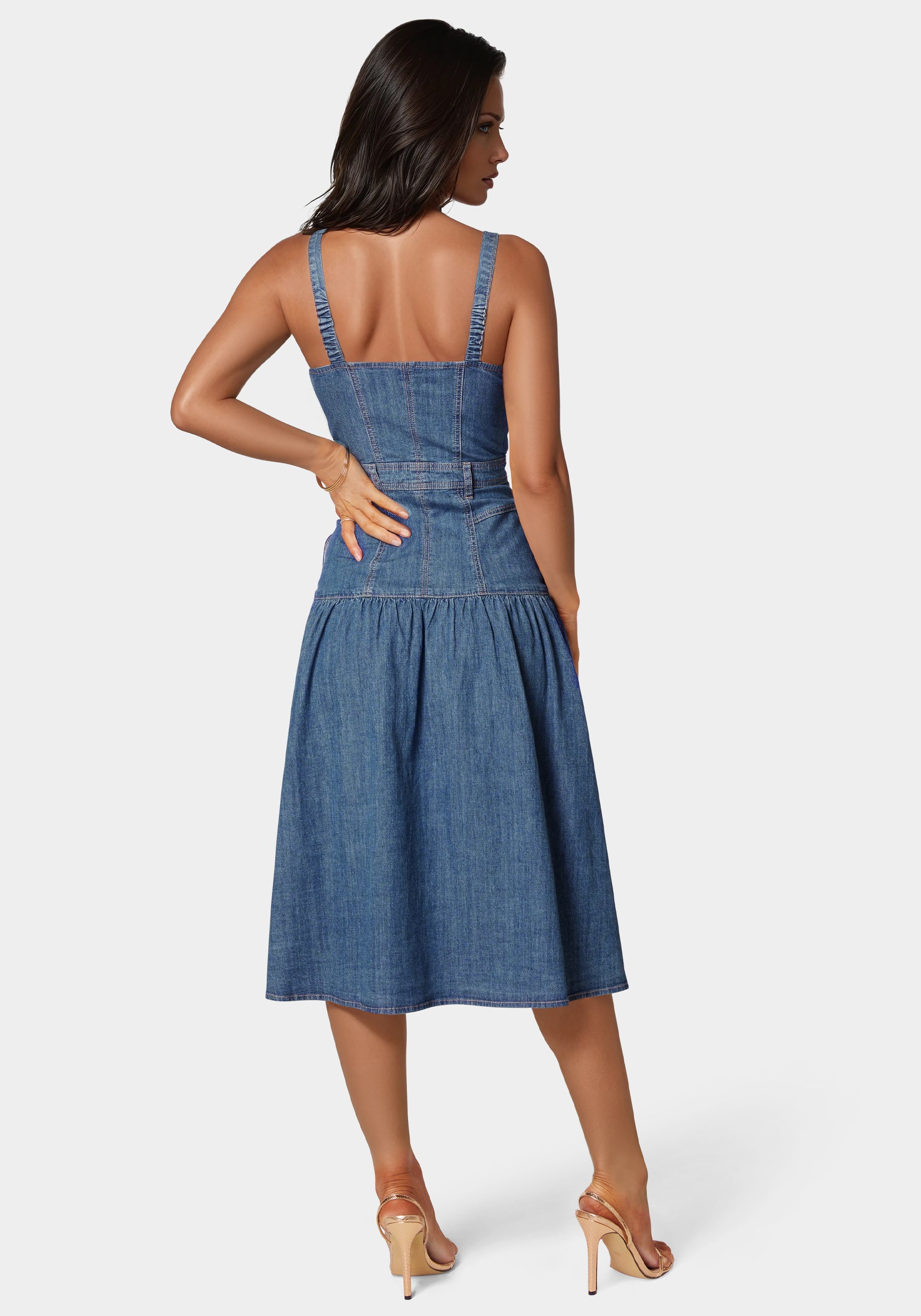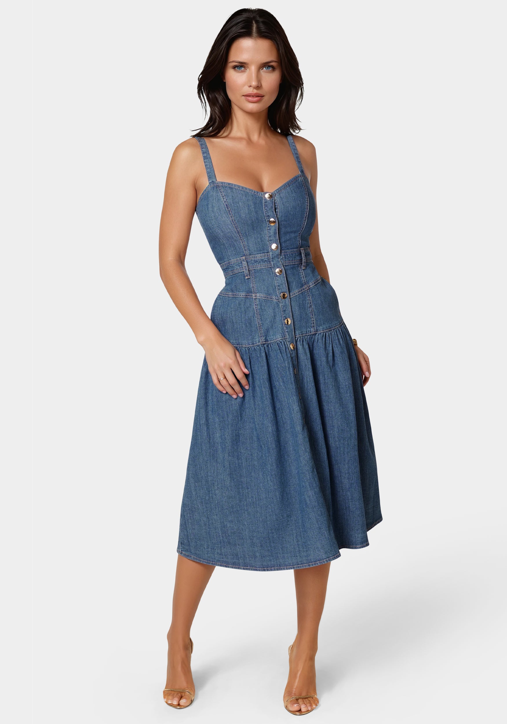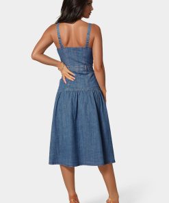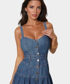 Stylish sleeveless maxi dress with metal snap front closure and elasticated back detail. Versatile for casual wear or relaxed daytime events.