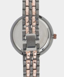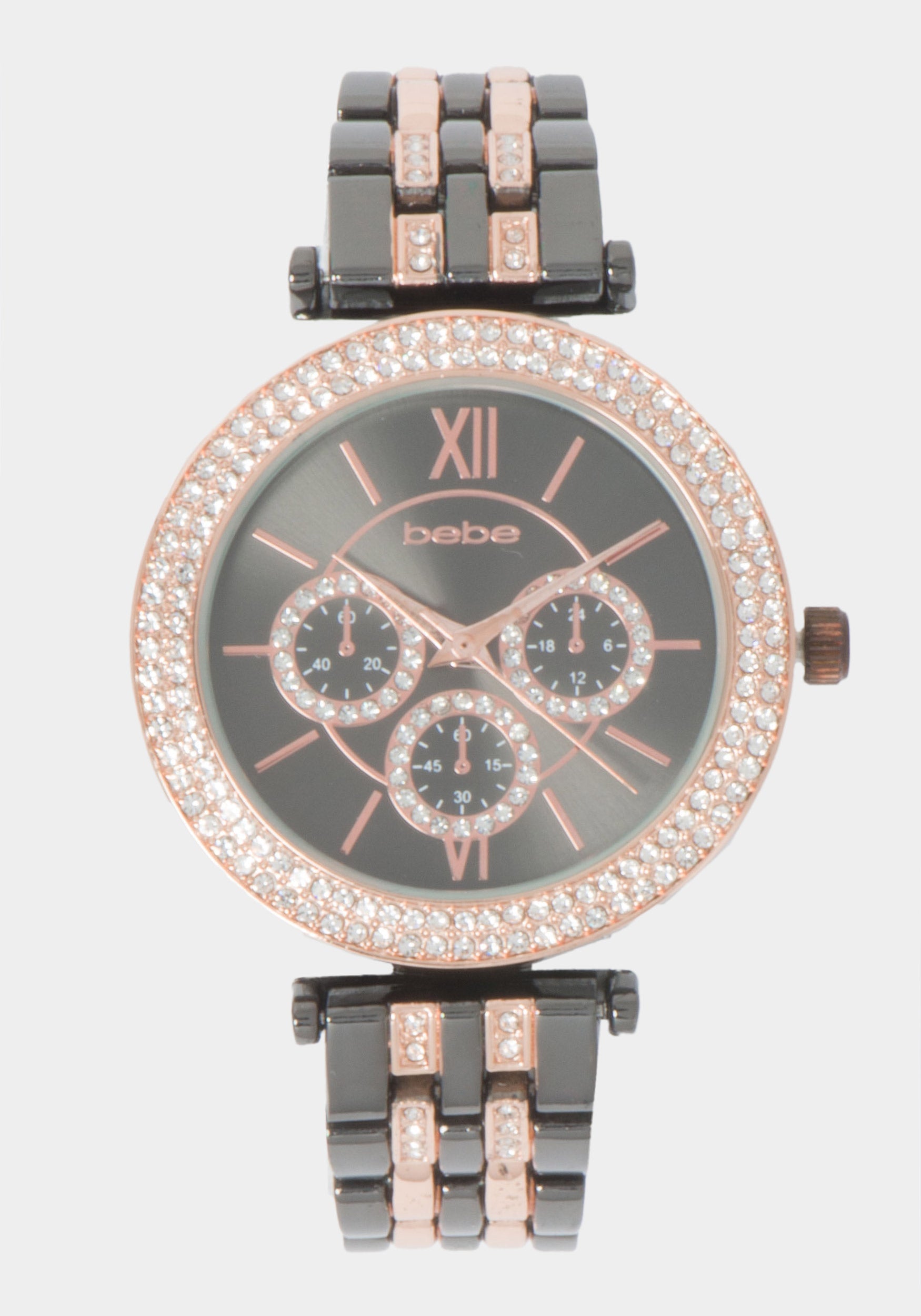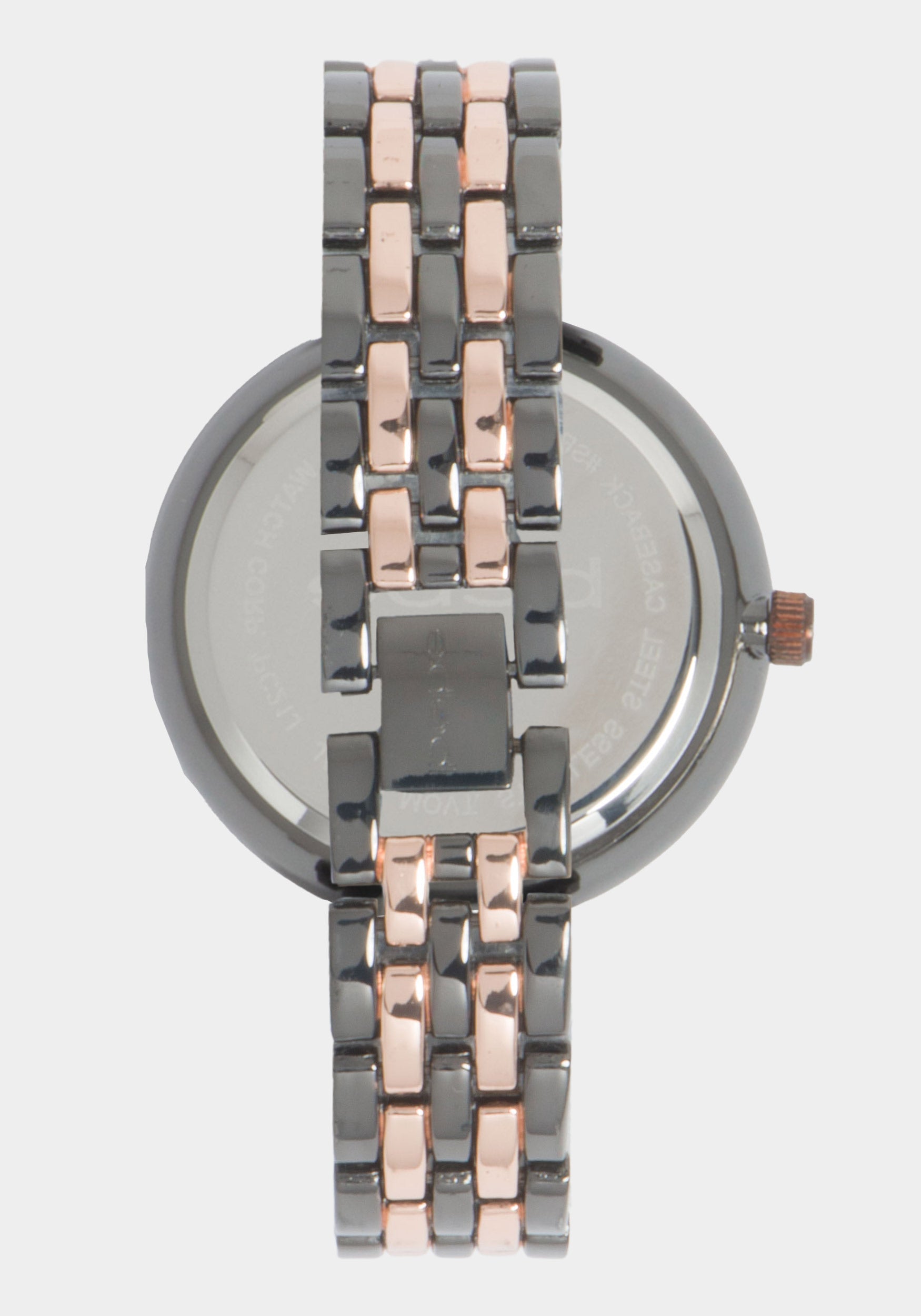 Made for a seamless transition from day to night, this glossy gunmetal-toned watch features stunning crystal details and a delicate design.