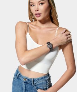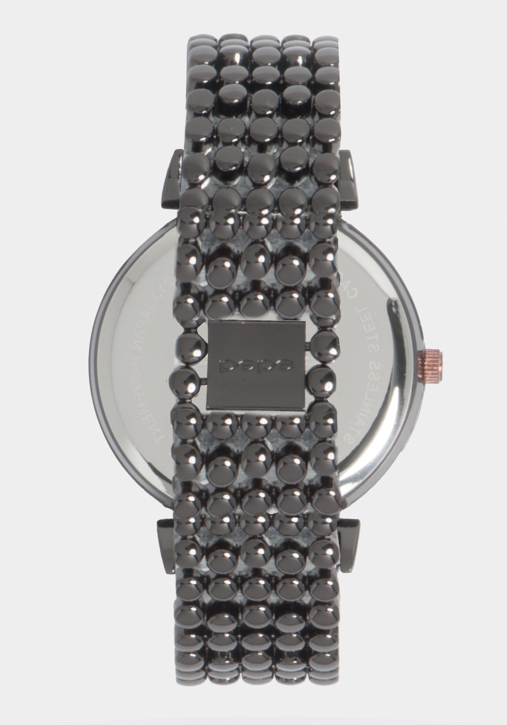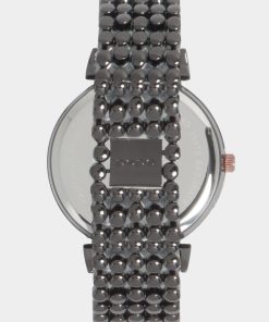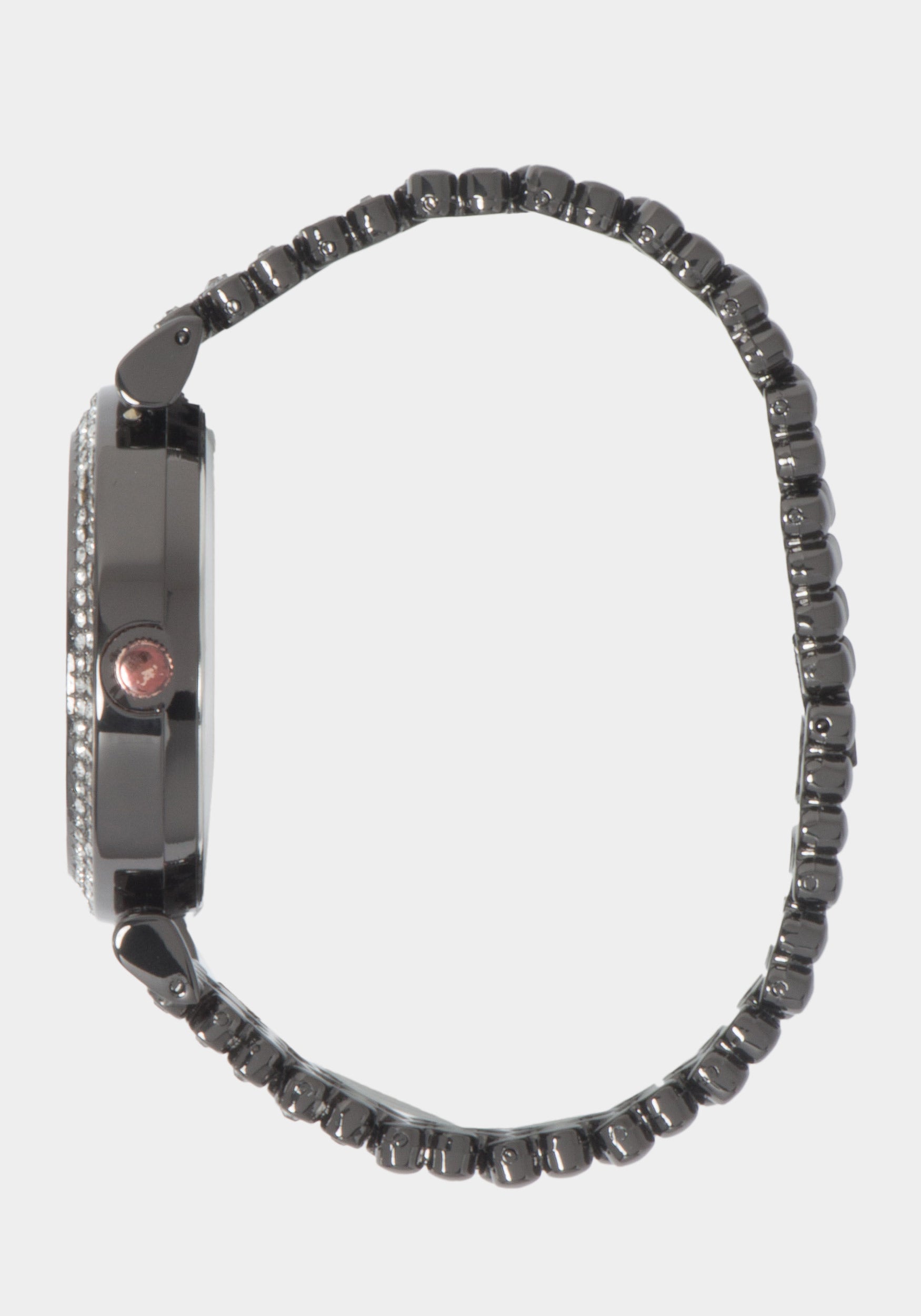 Effortlessly transition from day to night in a gunmetal-toned watch. With rose gold details and a crystal bezel, this bold watch is a sleek addition to your everyday wear.