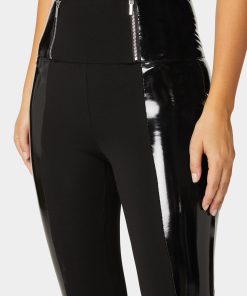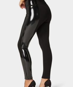 Bebe Women’s High Waist Zipper Detail Liquid Shine Combo Knit Legging | Black