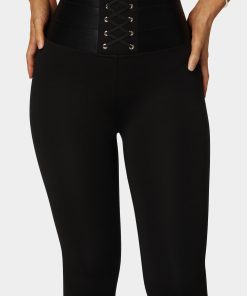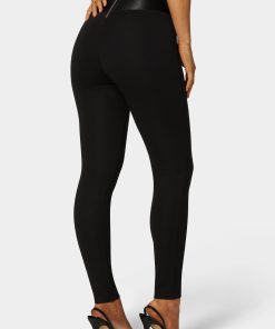Sleek, high waisted leggings with satiny elastics, designed for comfort with stretch fabric and metal zipper. Perfect for workouts or casual chic streetwear.