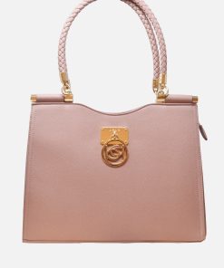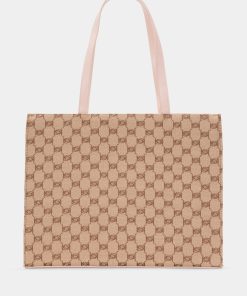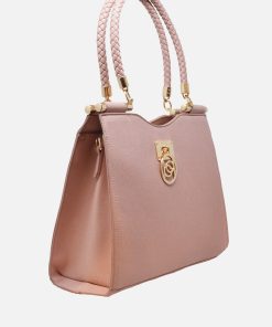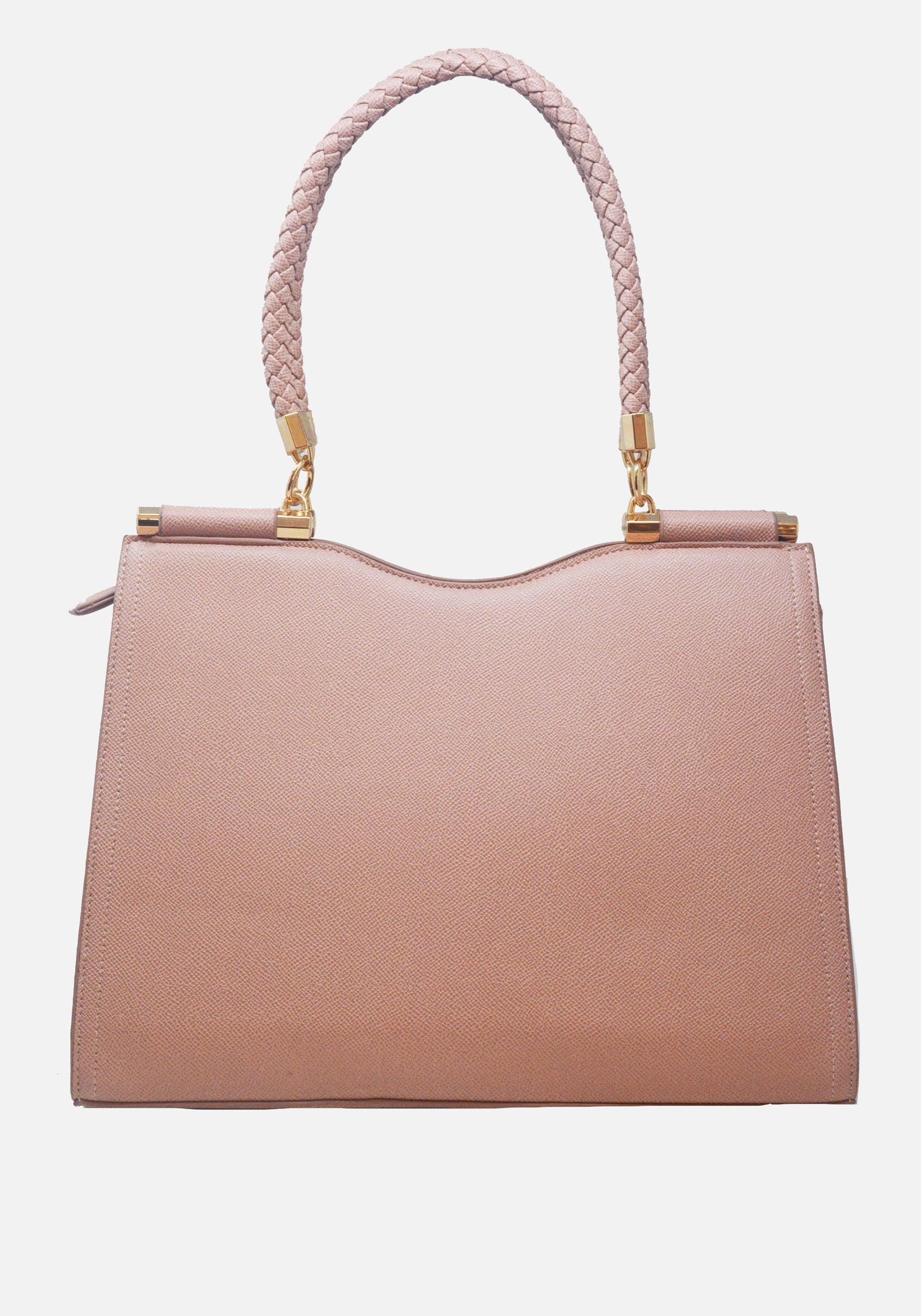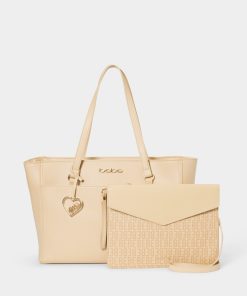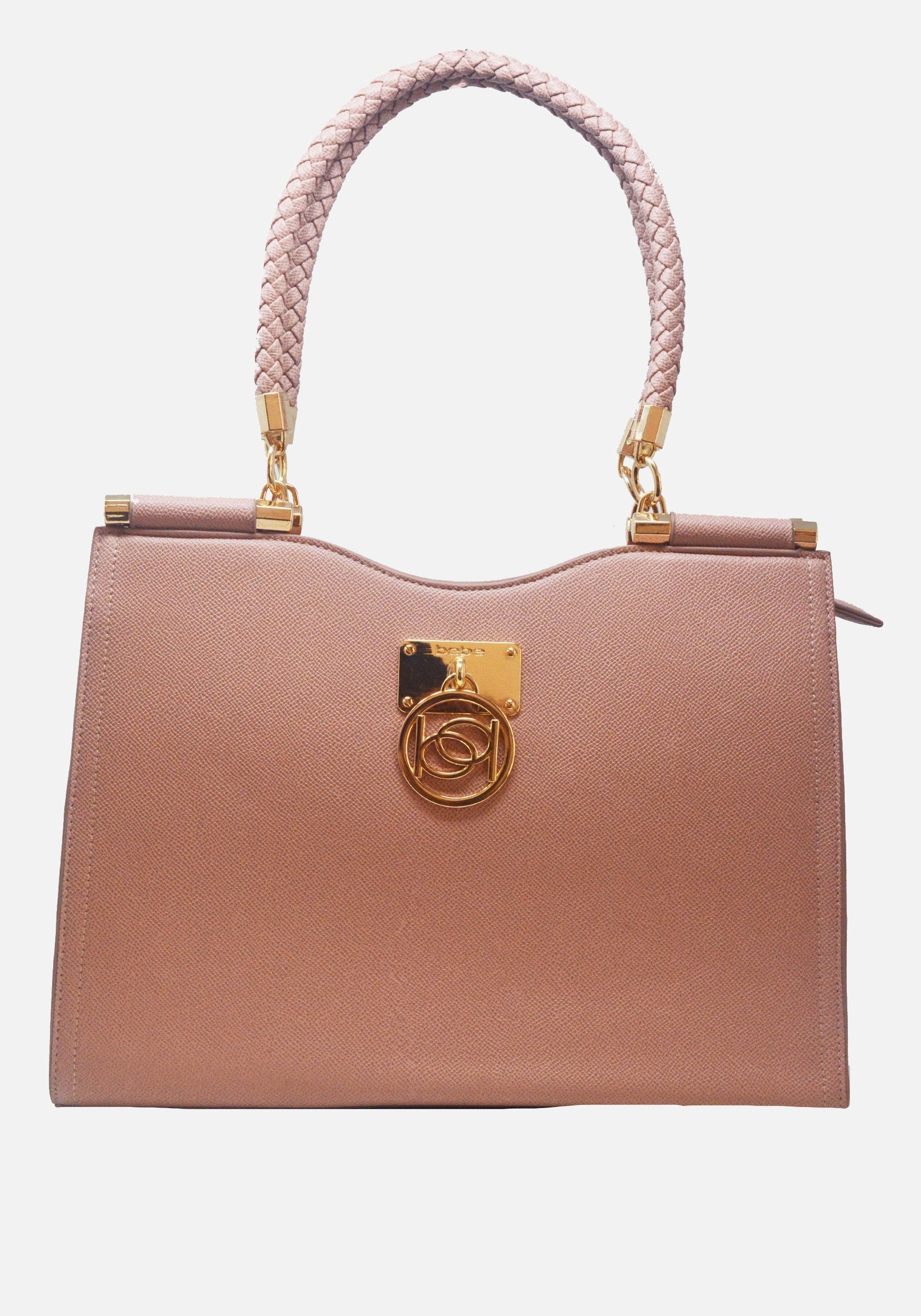 The perfect shopping companion is a stylish bag. This shopper bag features braided rope top handles, a detachable crossbody strap, and charm logo plate detail.