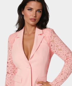 Bebe Women’s Lace Combo Tailored Jacket | Apricot Blush