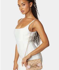The Leilani Monogram Crossbody offers an irresistible allure. This bag, with its soft hues and subtle monogram, radiates a refined grace, making it a versatile accessory for both day and night.