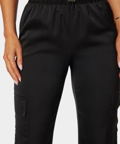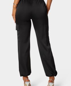Bebe Women’s Luxe Satin Cargo Jogger | Black