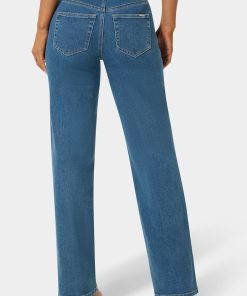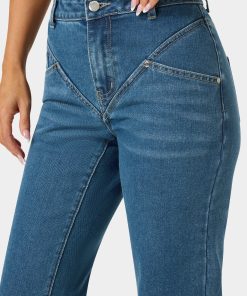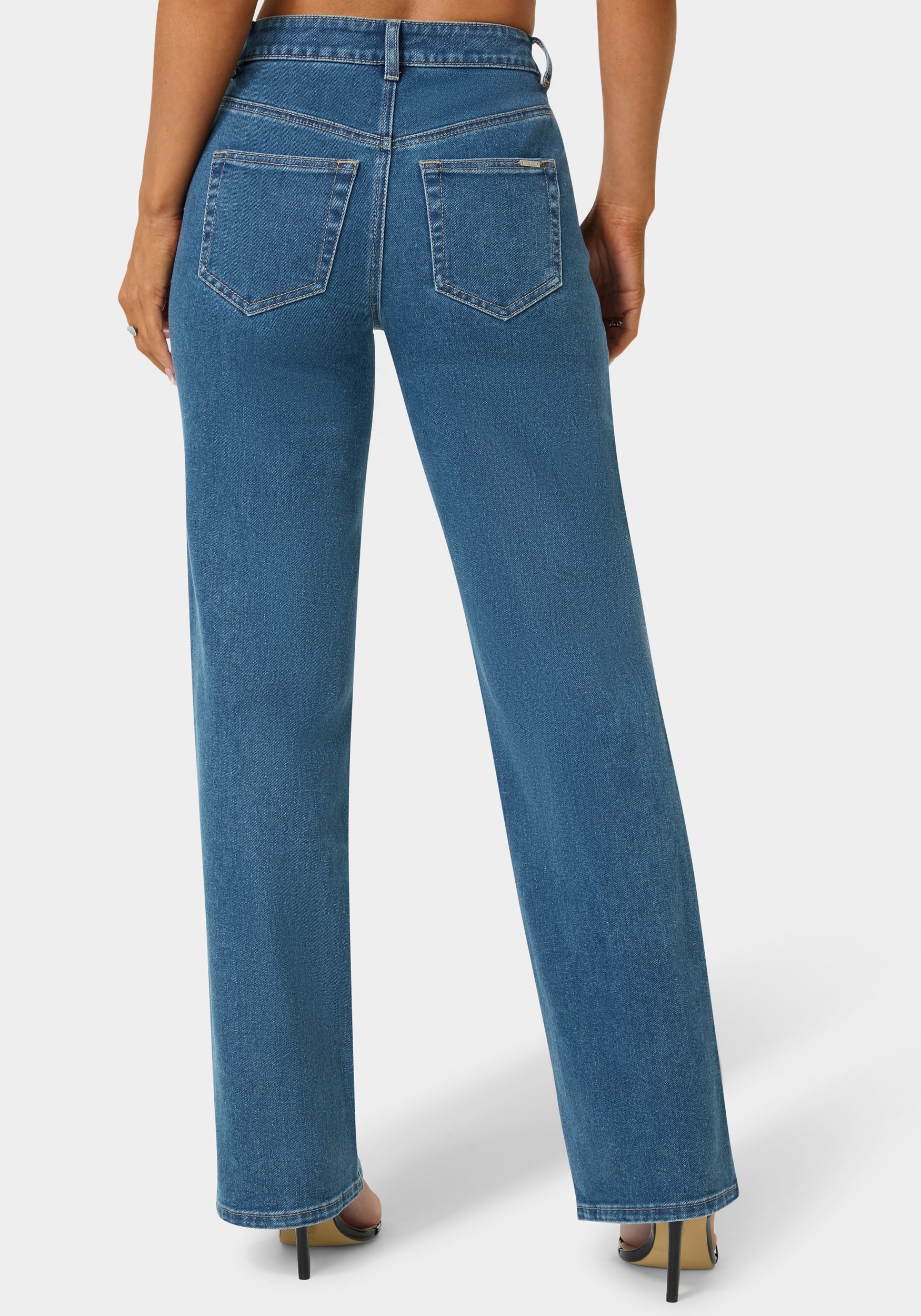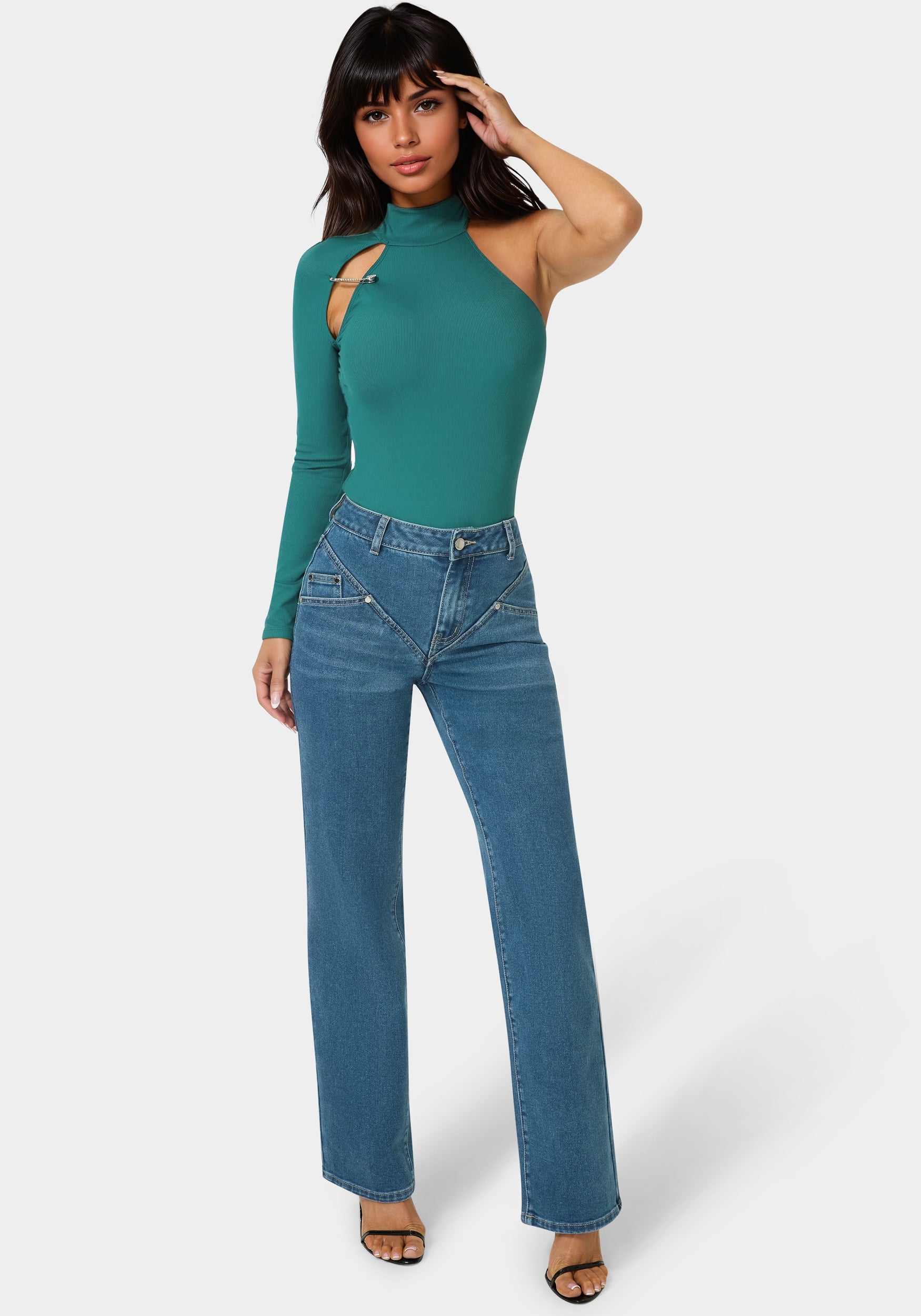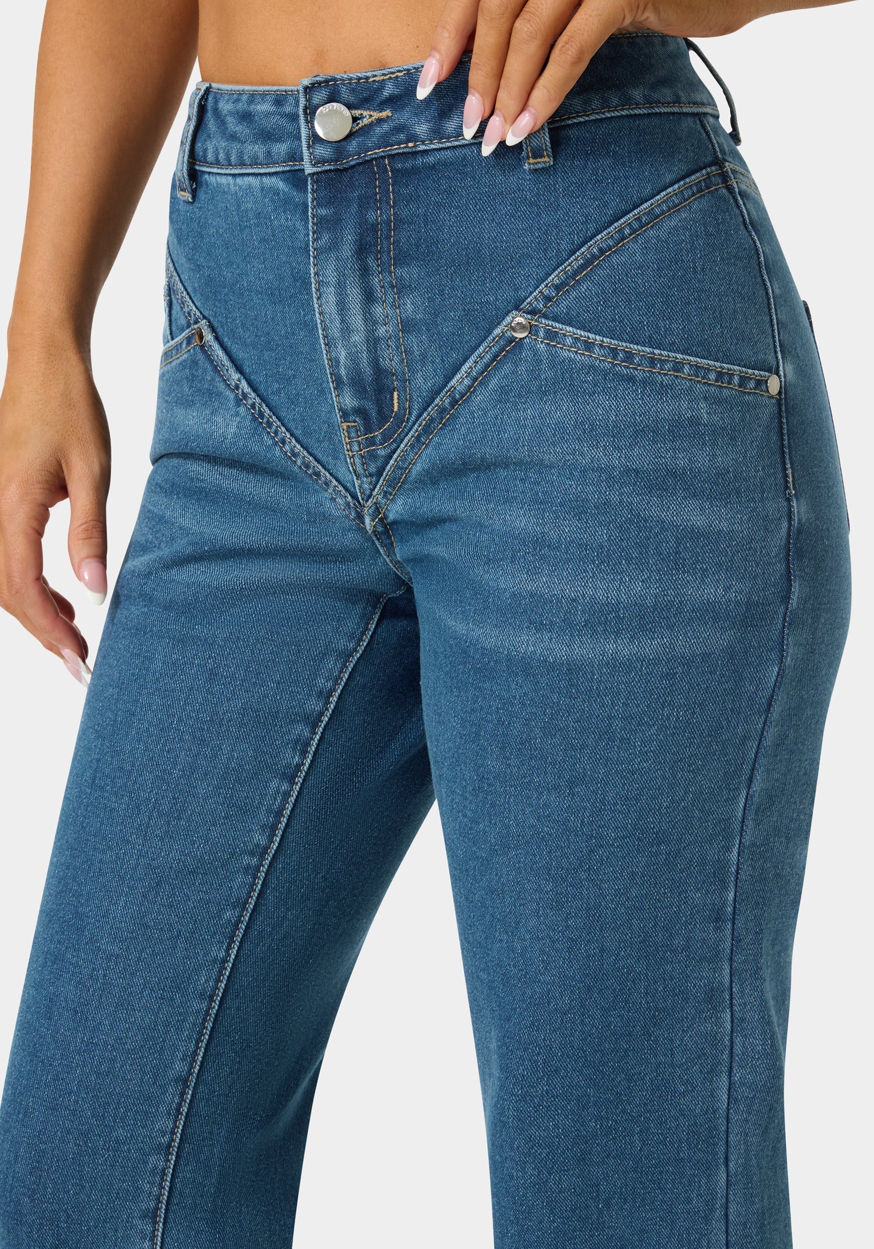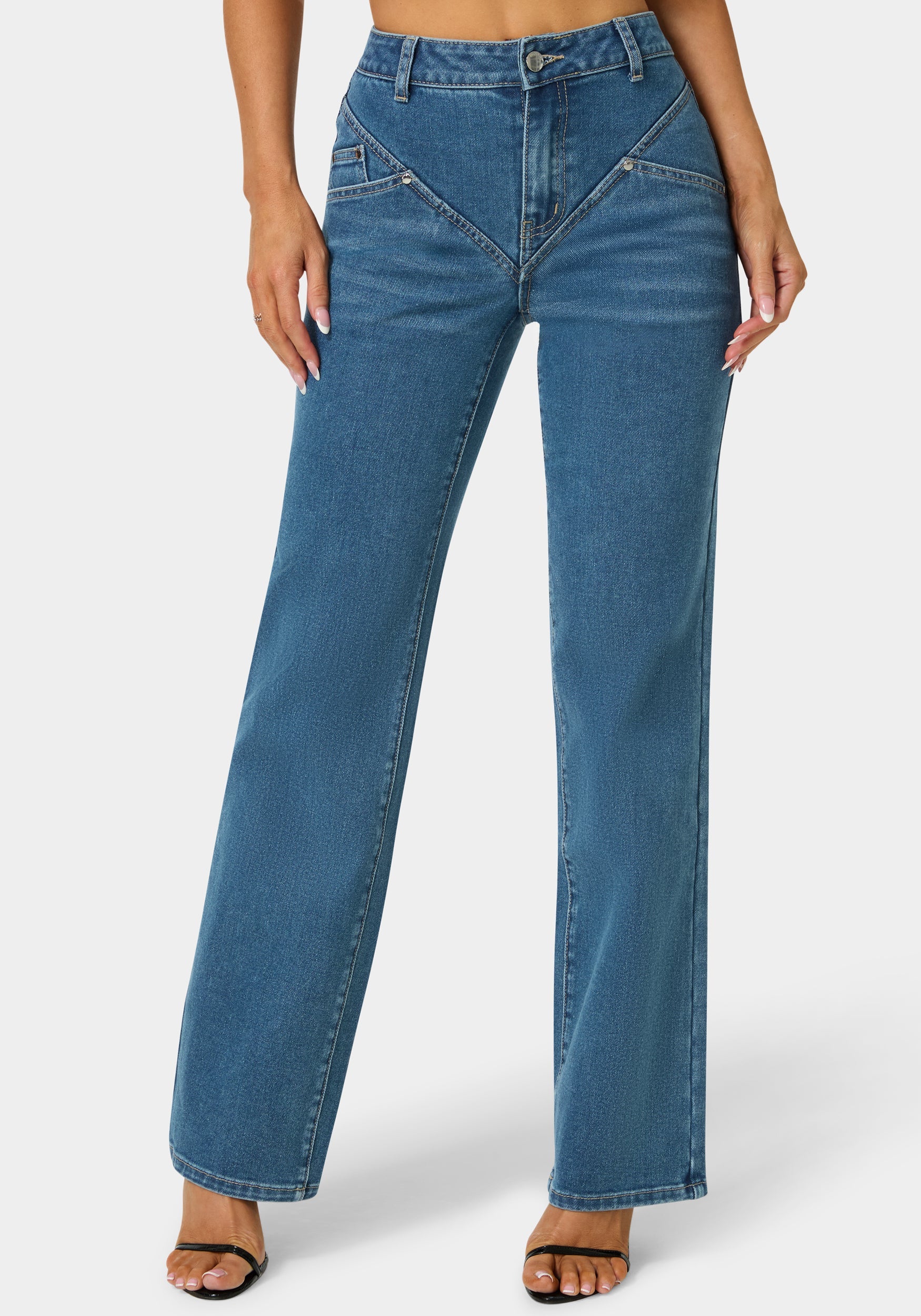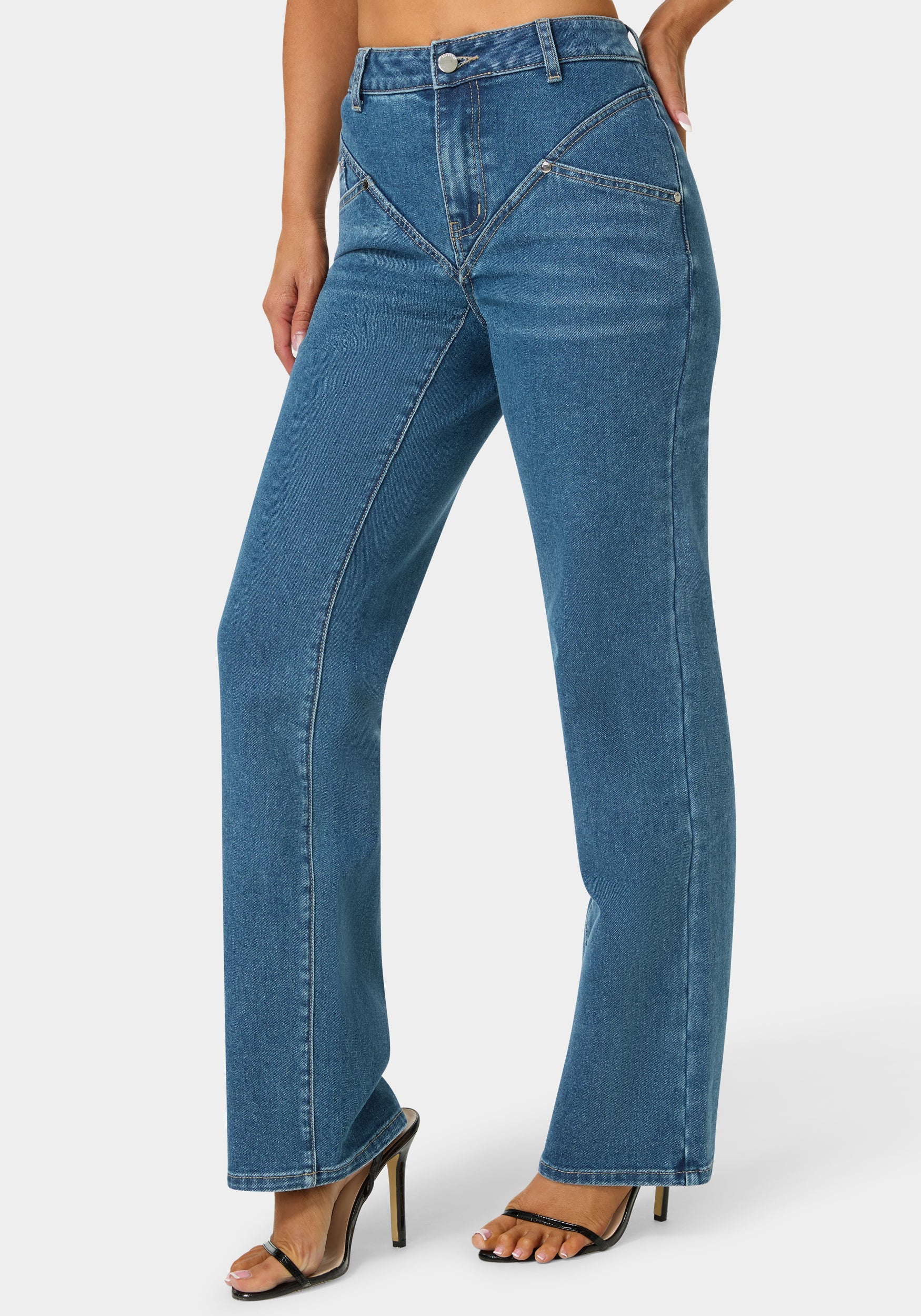 A natural waist and V-cut define these straight-leg jeans, offering versatile style for any occasion.