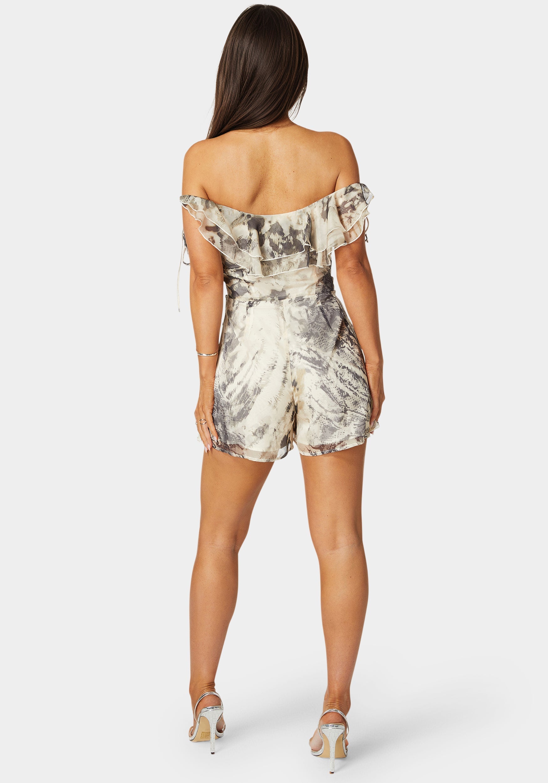 Step into summer with the off-shoulder flowy romper, perfect for sunset cocktails or an afternoon by the pool. This romantic piece highlights your shoulders and flows beautifully with your every move.