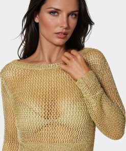 This open-knit design with a relaxed fit, long sleeves, and stretch fabric is perfect for casual days or cooler evenings. Accented with gold lurex yarn, it combines comfort with subtle elegance.