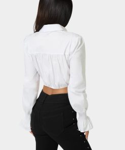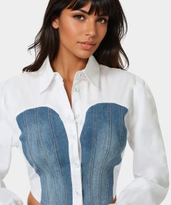 Stay effortlessly chic with this classic poplin denim top; suitable for day-to-night transitions.