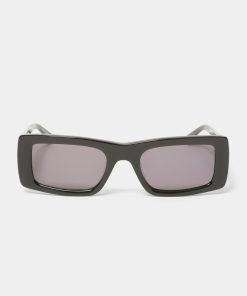 Channel Ciara’s signature style in these glossy black rectangle sunglasses. They’re giving major 90’s glam with handmade acetate frames and a gold double “b” for the bebe logo detail on the temples.Size: Eye Size 54mm. Bridge Width 21mm. Temple/Arm Length 145mmCare Instructions: Use lens spray or a mild liquid soap/water and wipe with a clean, soft, absorbent cloth.