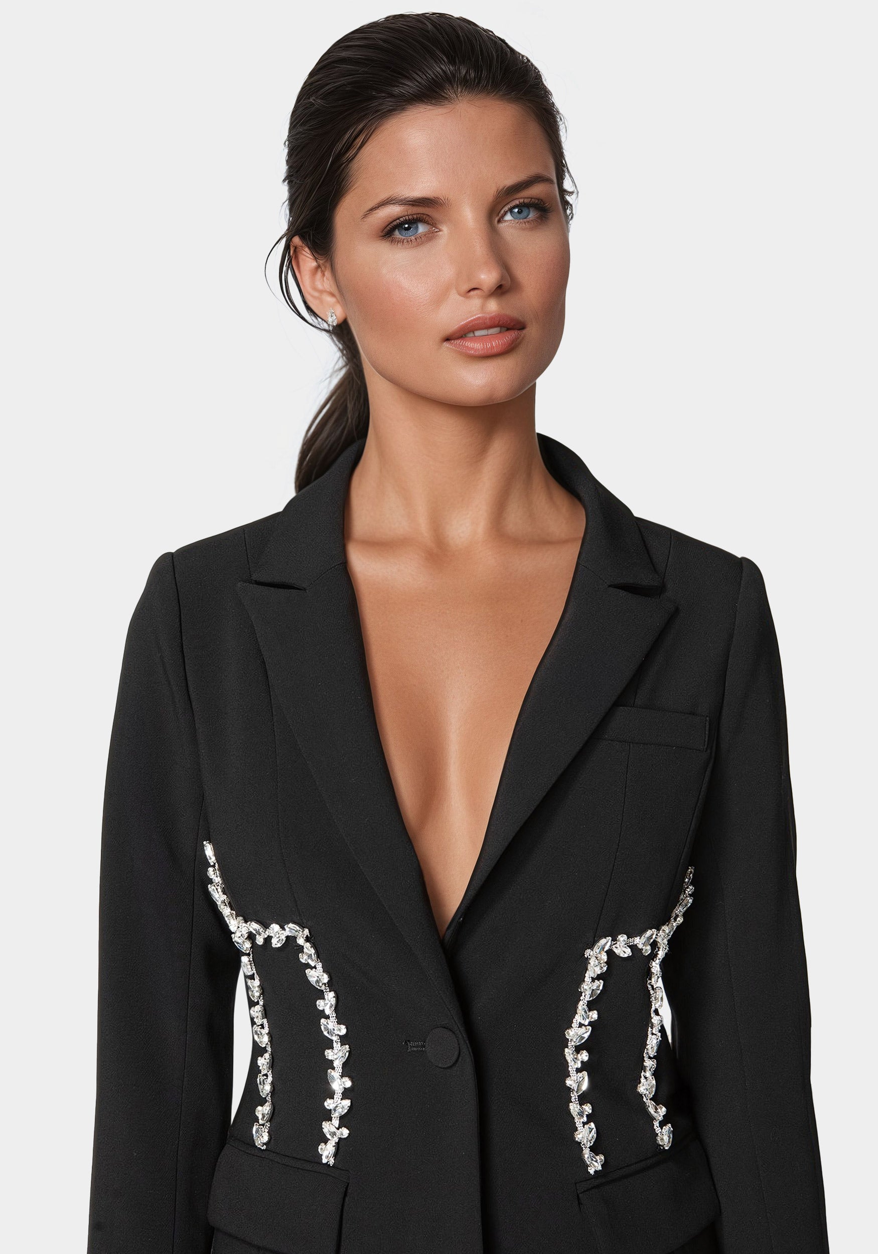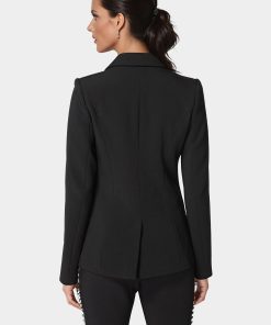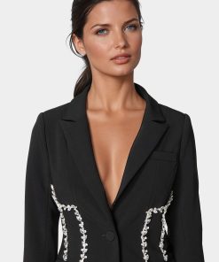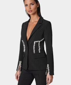 Bebe Women’s Rhinestone Detail Woven Twill Blazer | Black