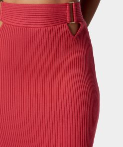 Bebe Women’s Ring Detail Side Slit Sweater Skirt | Cardinal
