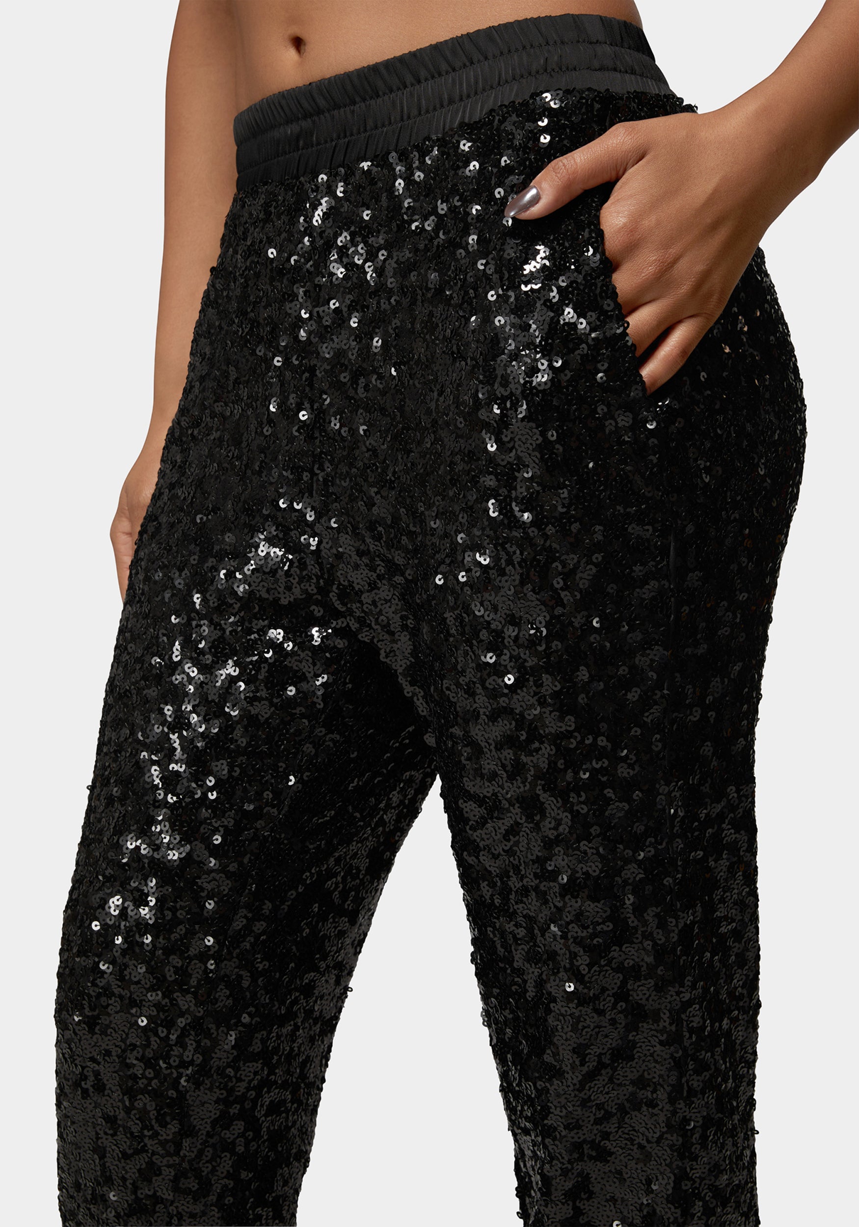 Stride with glitter in every step with these sequin joggers that redefine casual luxe. Tailored for comfort yet screaming opulence, they’re the ultimate statement piece for the fearless fashionista. Pair with heels or sneakers; either way, you’re walking in boundless style.