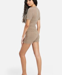 Bebe Women’s Soft Yarn High Waisted Sweater Short | Mocha Brown