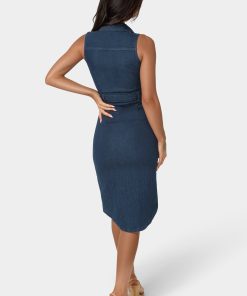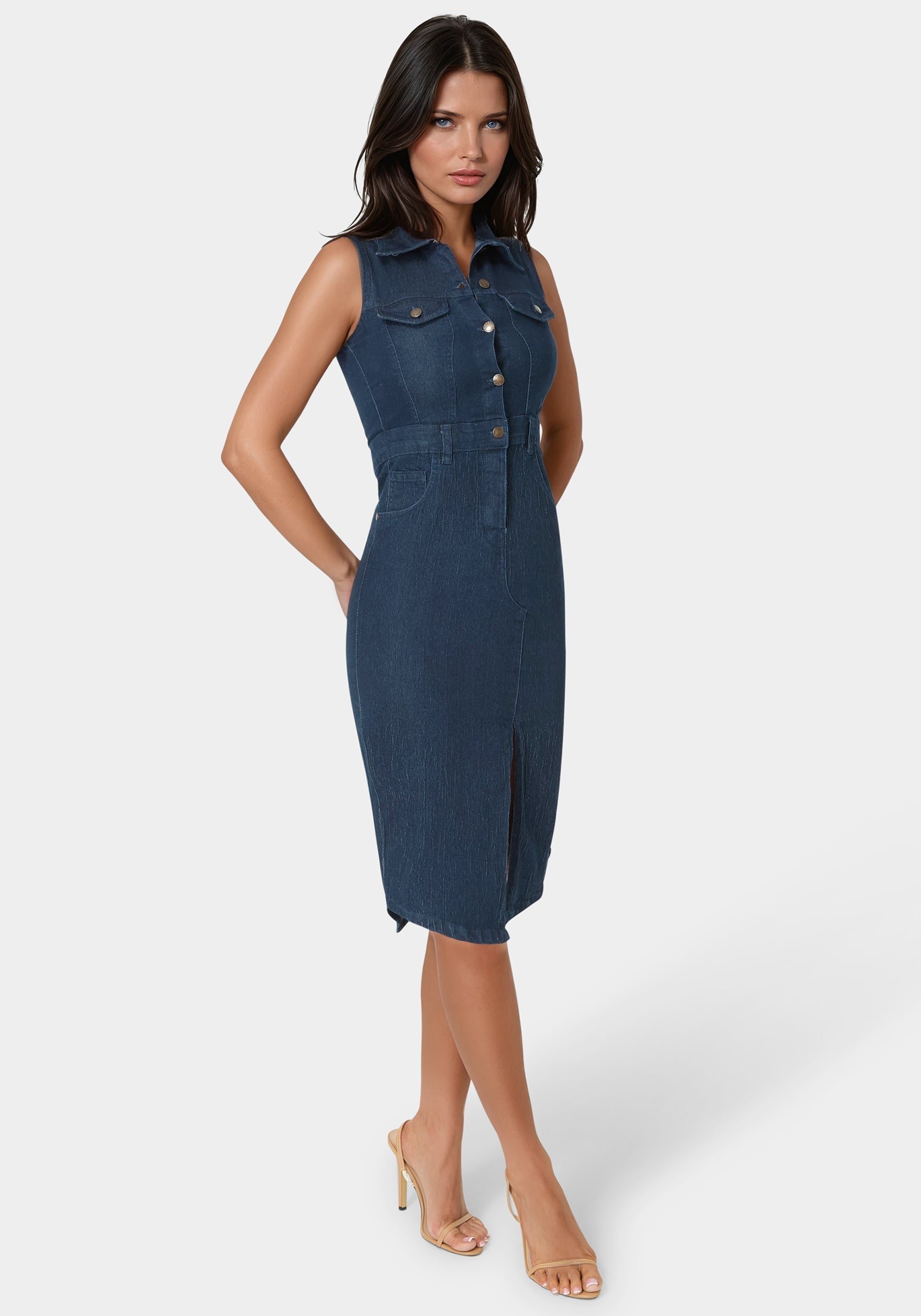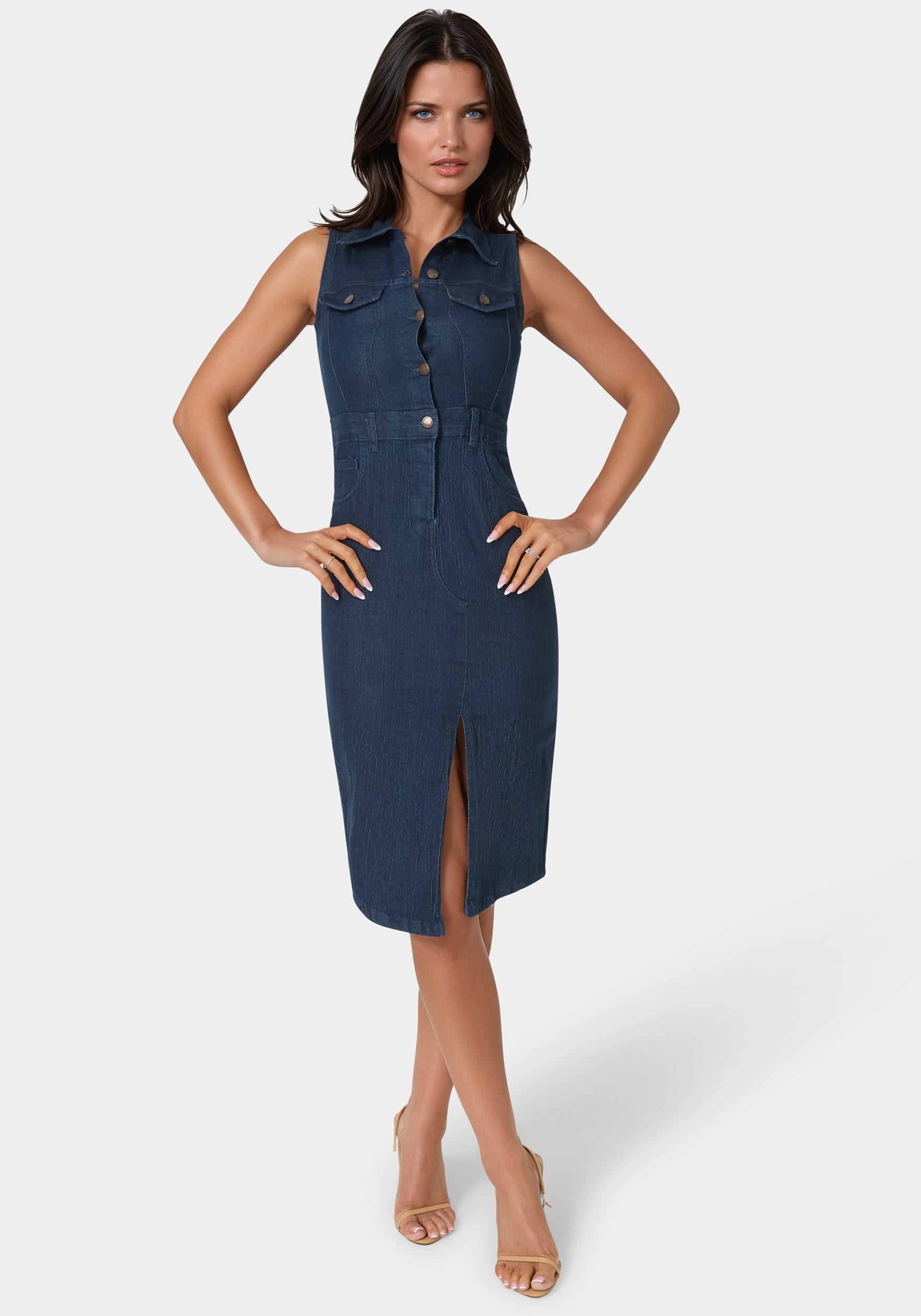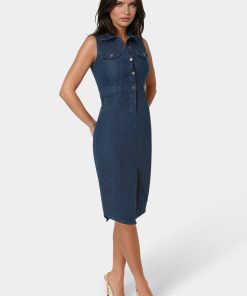 Bebe Women’s The Sleeveless Midi Shirt Dress | Indigo Wash