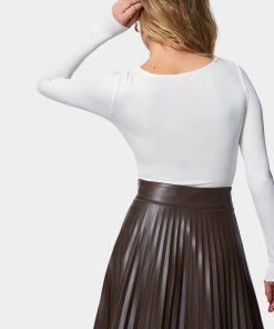Bebe Women’s Twist Front Long Sleeve Bodysuit | White Alyssum