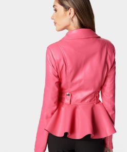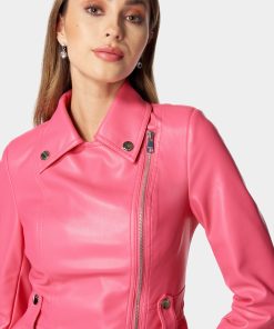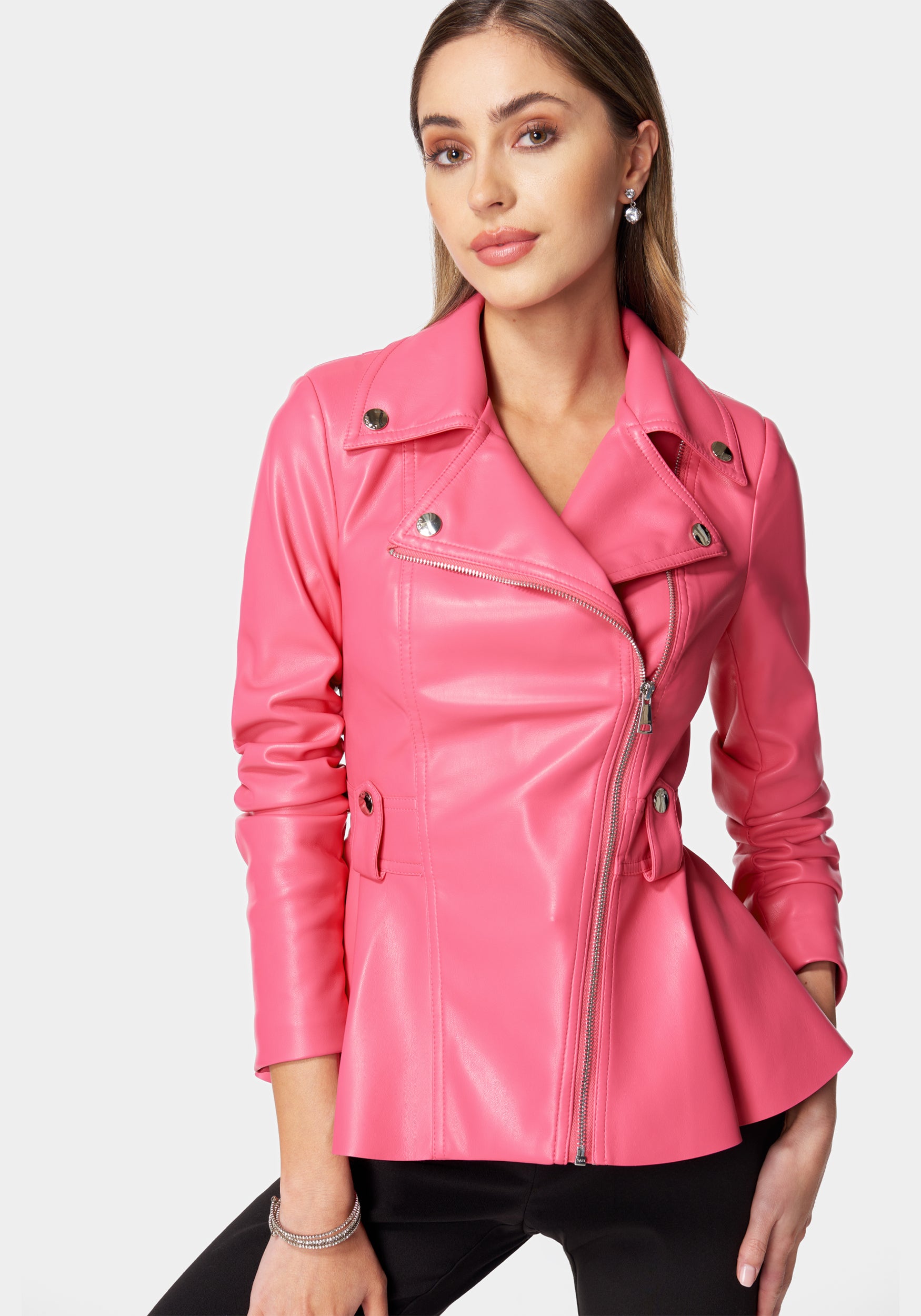 Bebe Women’s Vegan Leather Moto Peplum Jacket | Raspberry Sorbet