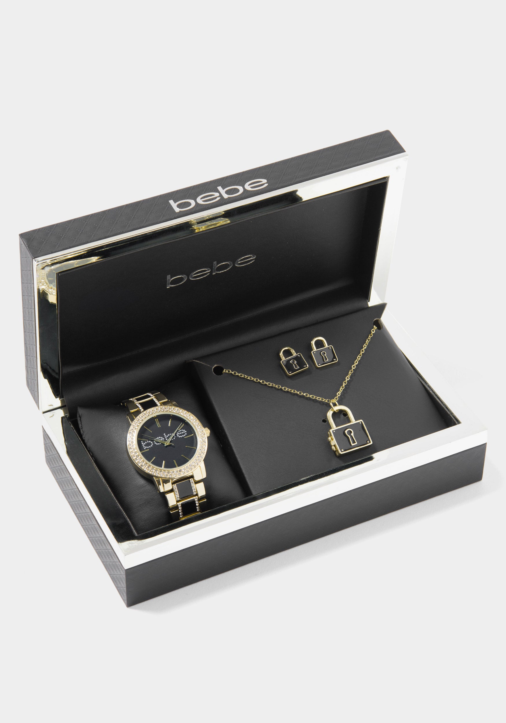 Elevate your look in one step: a sleek watch, locket, and earring set for instant, coordinated elegance.