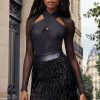 Meet your match! This bold logo tank features an all-over marble print with mesh trim and a laddered cutout back for some edge. Pairs well with the Bebe Logo Legging With Mesh Detail or the Bebe Logo Biker Short.